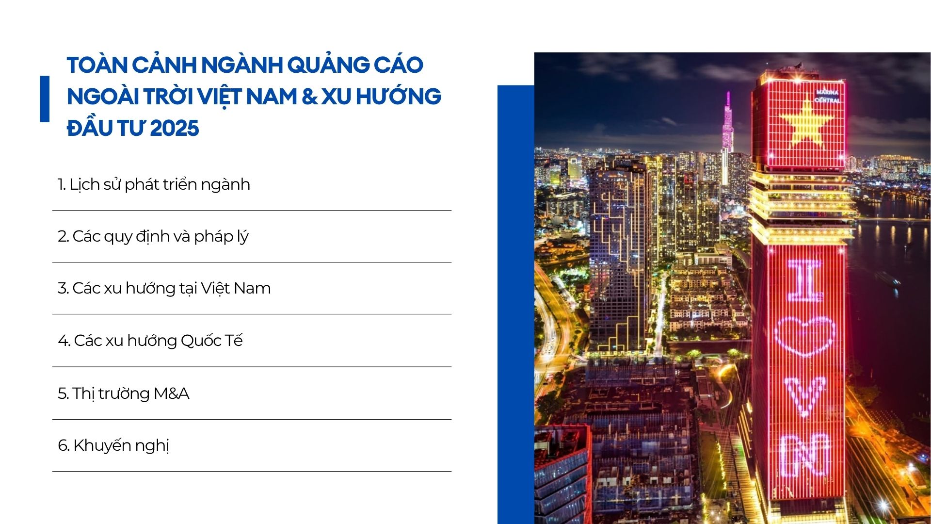 Ngành quảng cáo ngoài trời (OOH) tại Việt Nam đang thay đổi nhanh chóng – từ khung pháp lý, xu hướng trong nước và quốc tế, cho đến những thương vụ M&A đang nóng lên.